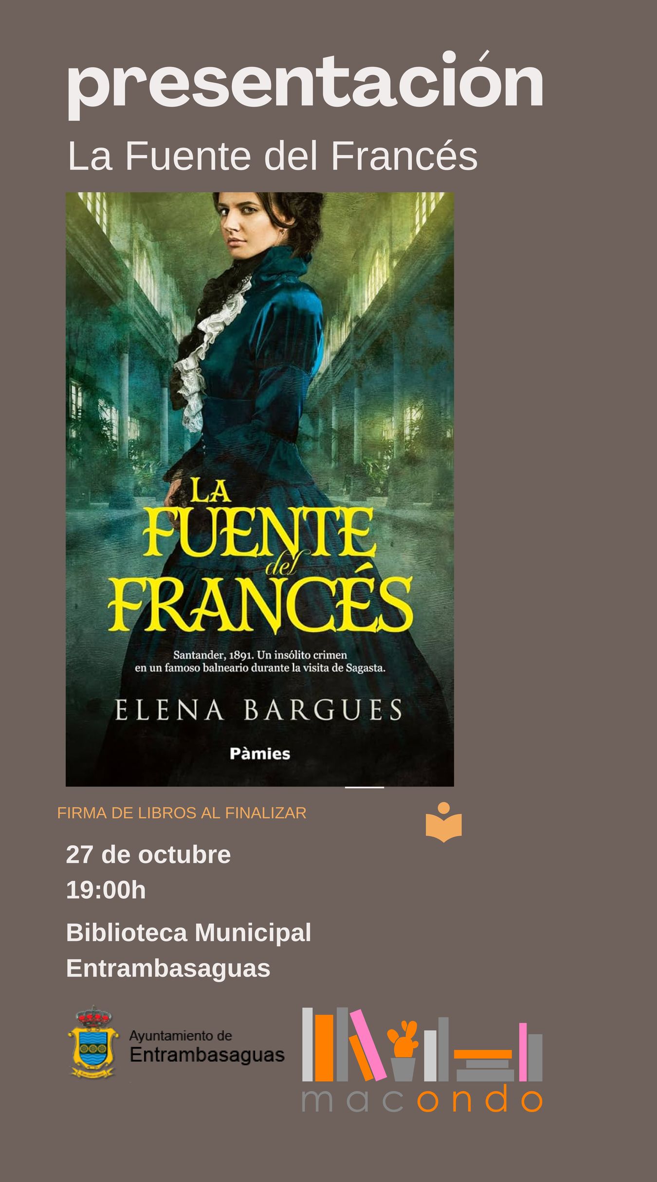 2023-10-27 19:00 h Casa de Cultura de Entrambasaguas Presentación del libro "LA FUENTE DEL FRANCÉS" de Elena Bargues.