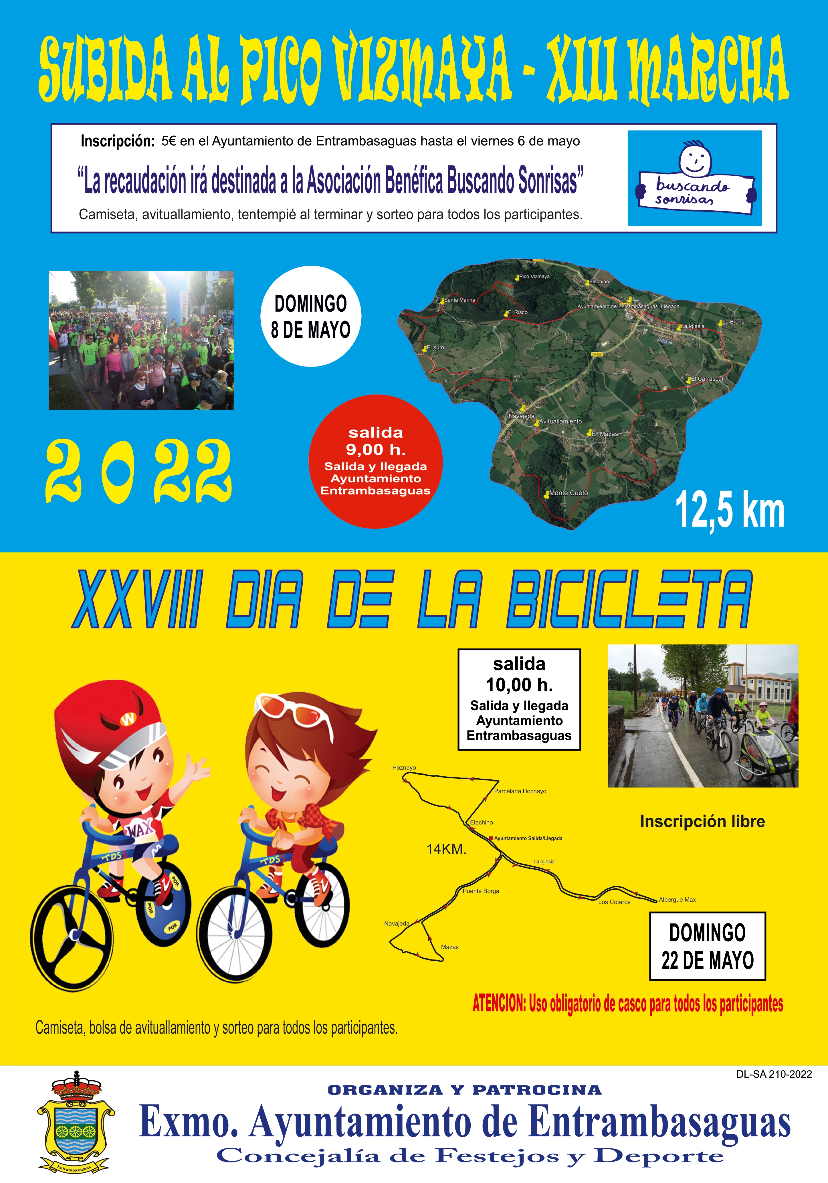 XIII MARCHA SUBIDA AL PICO VIZMAYA y XXVIII DÍA DE LA BICICLETA DE ENTRAMBASAGUAS / April 22, 2022 Enviado por Oscar el April 22, 2022 XIII MARCHA SUBIDA AL PICO VIZMAYA el domingo 8 de mayo y XXVIII DÍA DE LA BICICLETA DE ENTRAMBASAGUAS el domingo 22 de mayo.